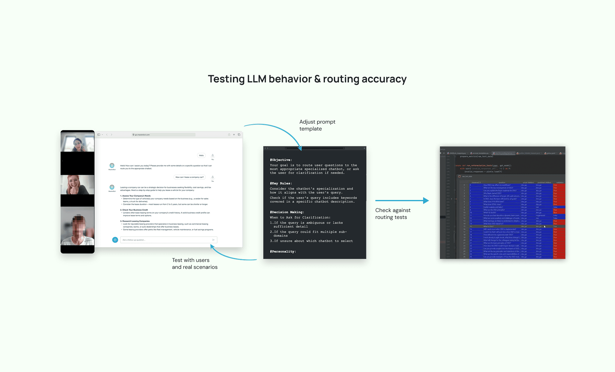 While some UX principles hold true across traditional and AI products, others had to be defined through experimentation. For example, shifting from a linear journey-based way of thinking to an intent-based approach meant that we couldn't just map out hero flows. Instead, we had to think through the system logic and design for fallbacks based on how the LLM model's understood the user's request.