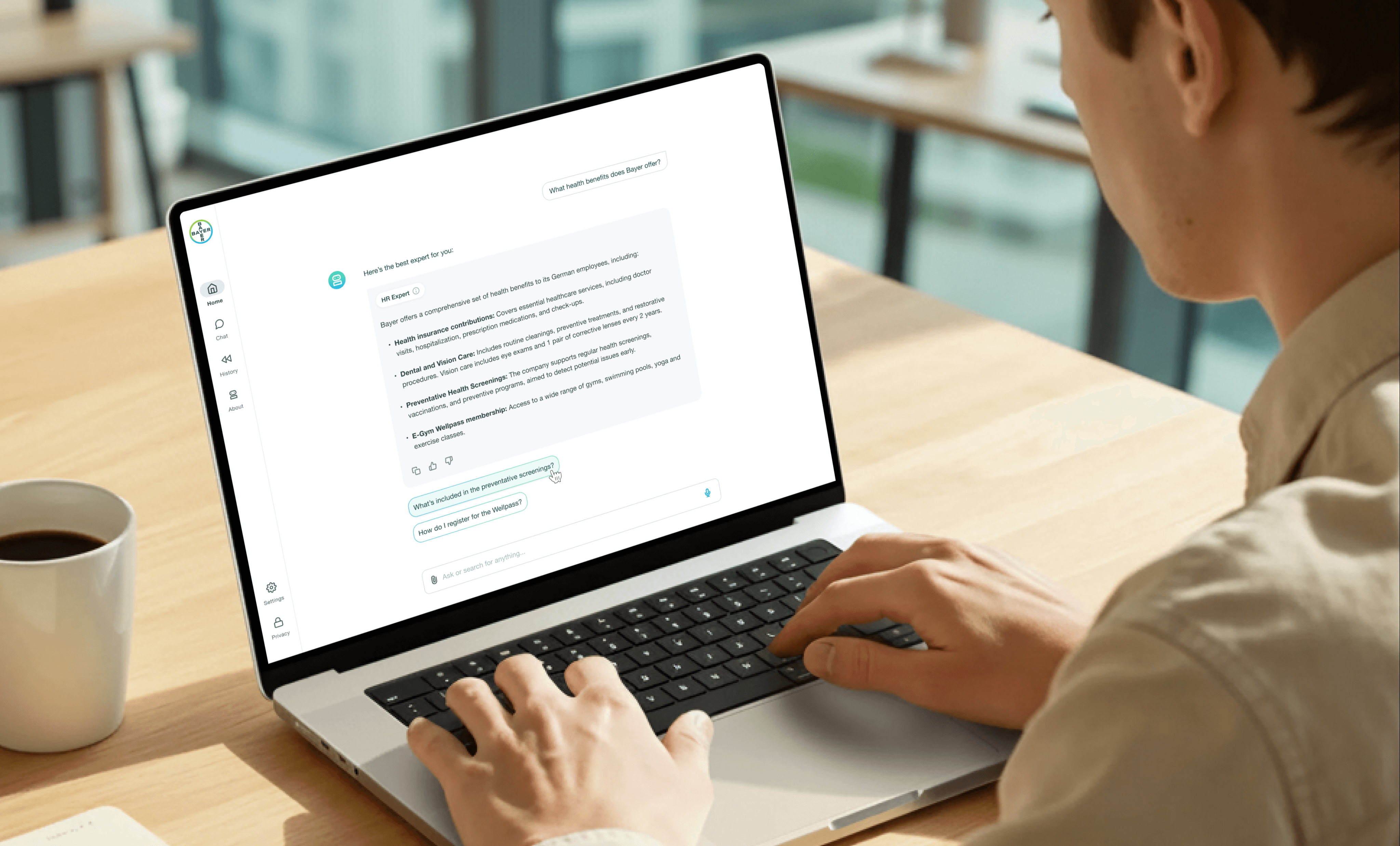 Over the past couple years, Bayer has seen an explosion of new chatbots and employee tools popping up across its different functions and geographies. This fragmented approach leads to frustration and wasted time, as employees try to find the best chatbot for HR questions or the right tool for requesting leave or booking a conference room.