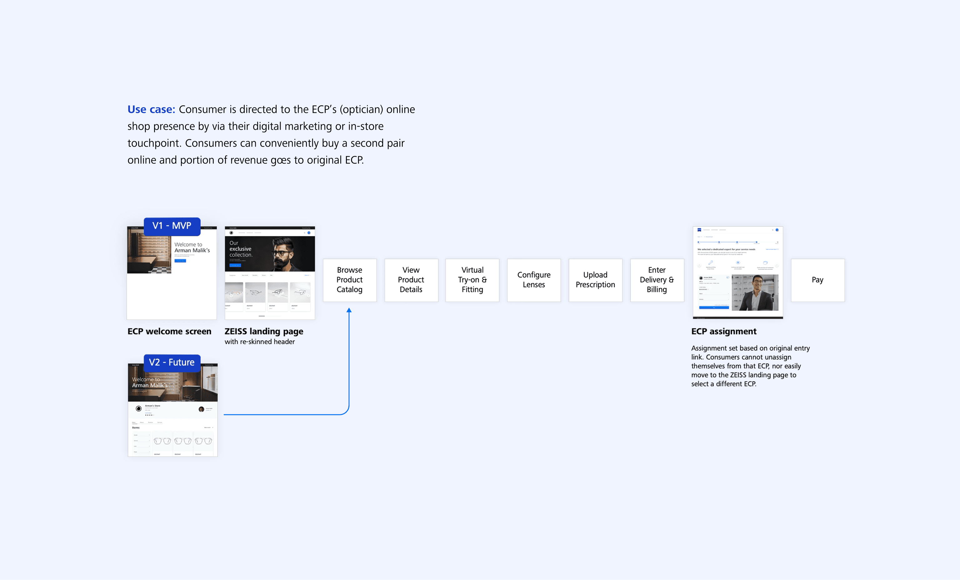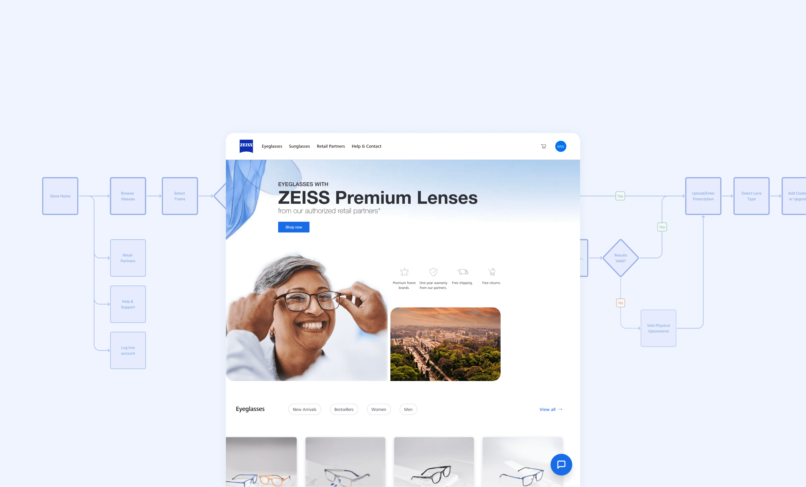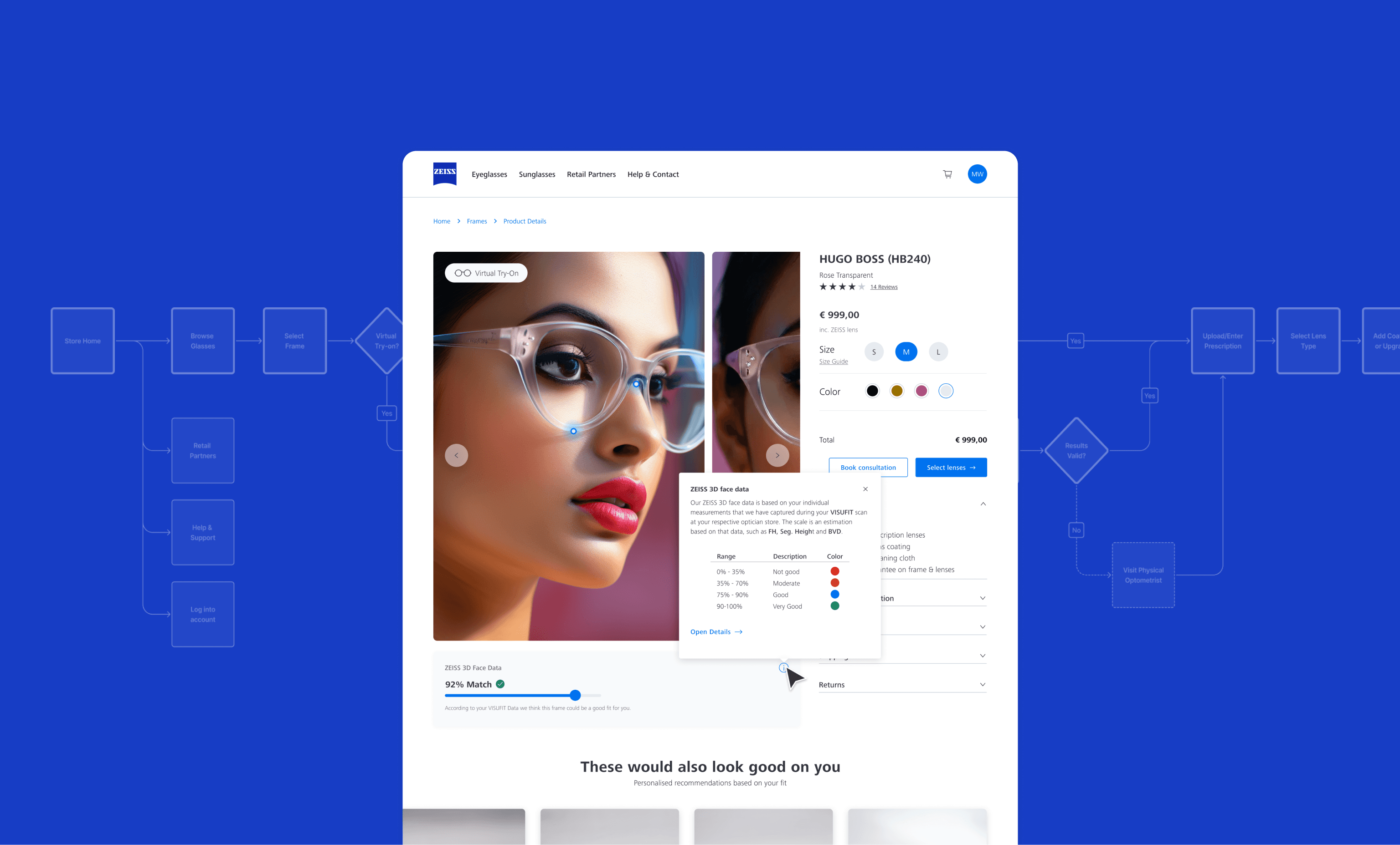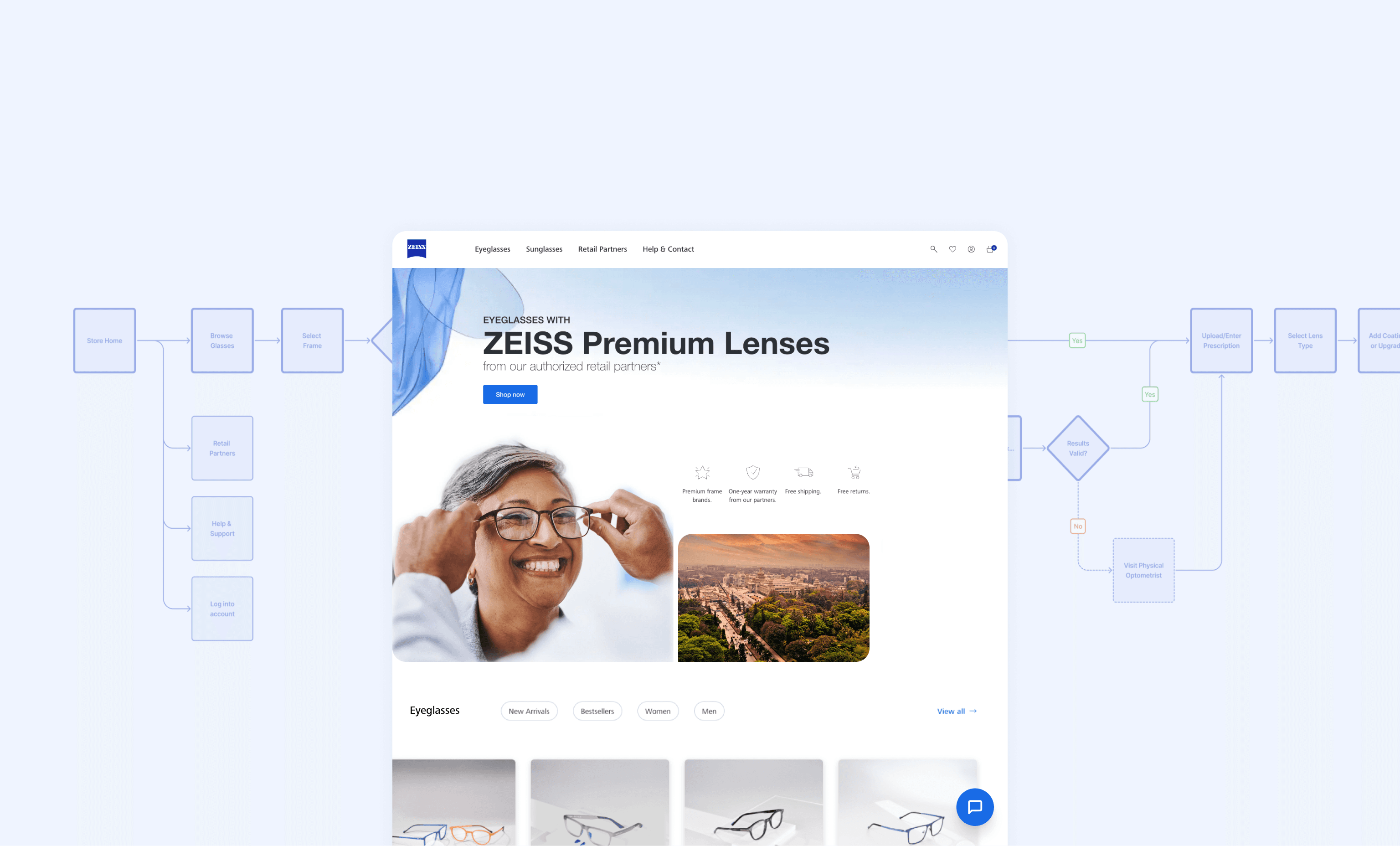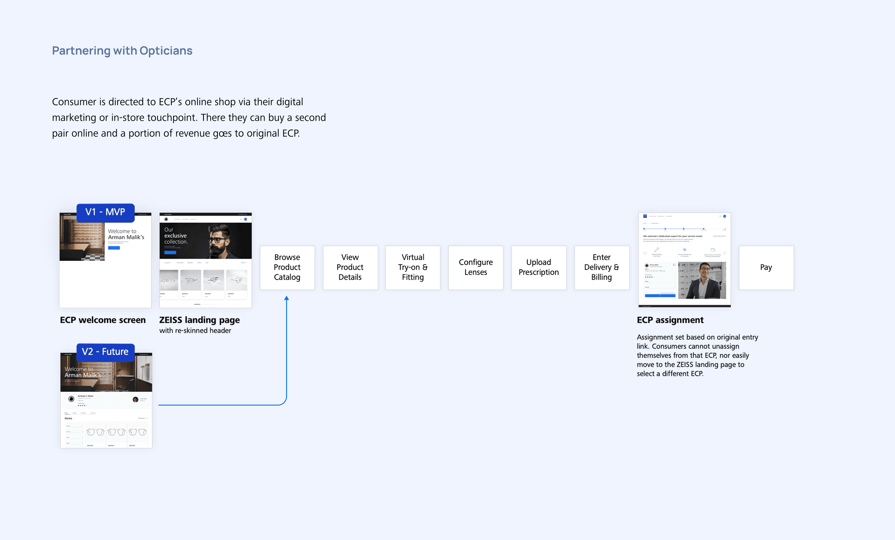 One of the key UX and business challenges was how to bring local opticians onto the marketplace and convince them of the value of selling online through ZEISS.