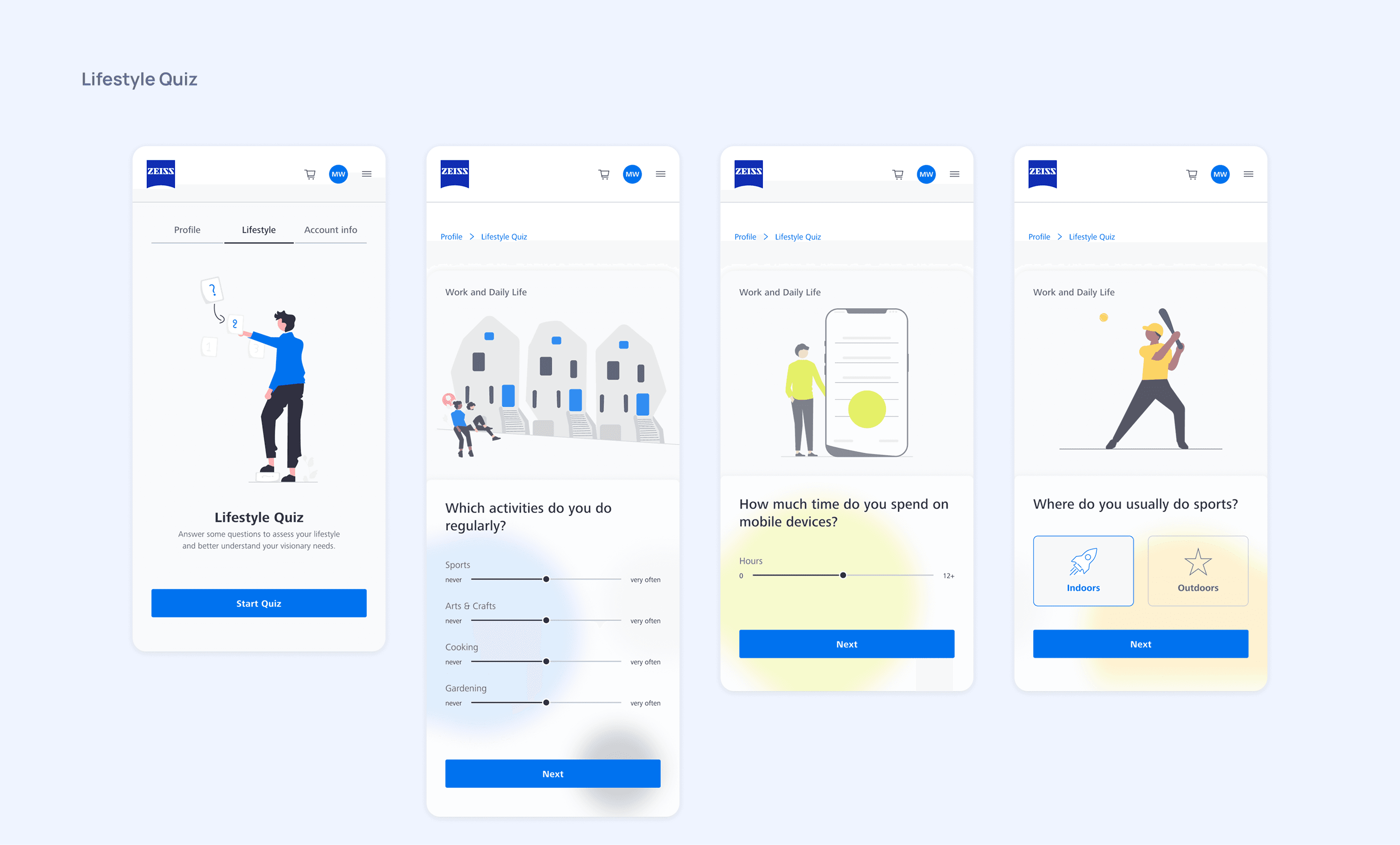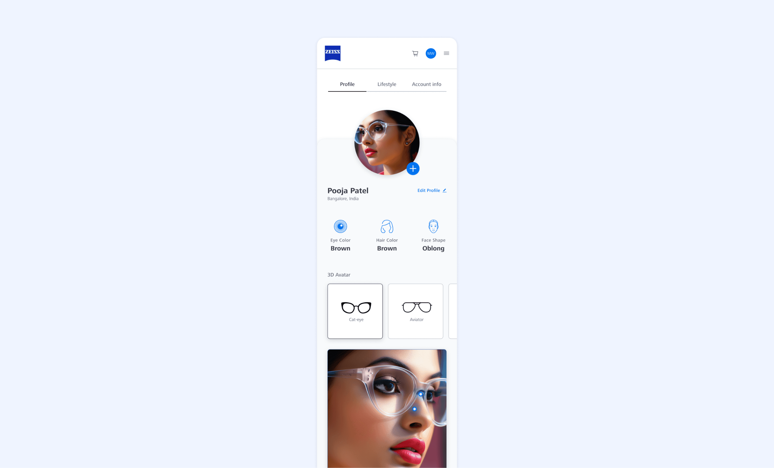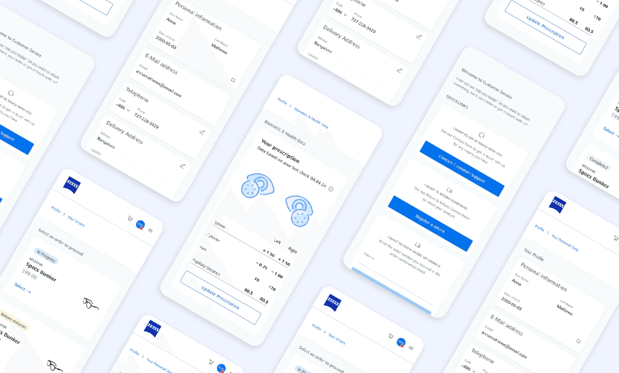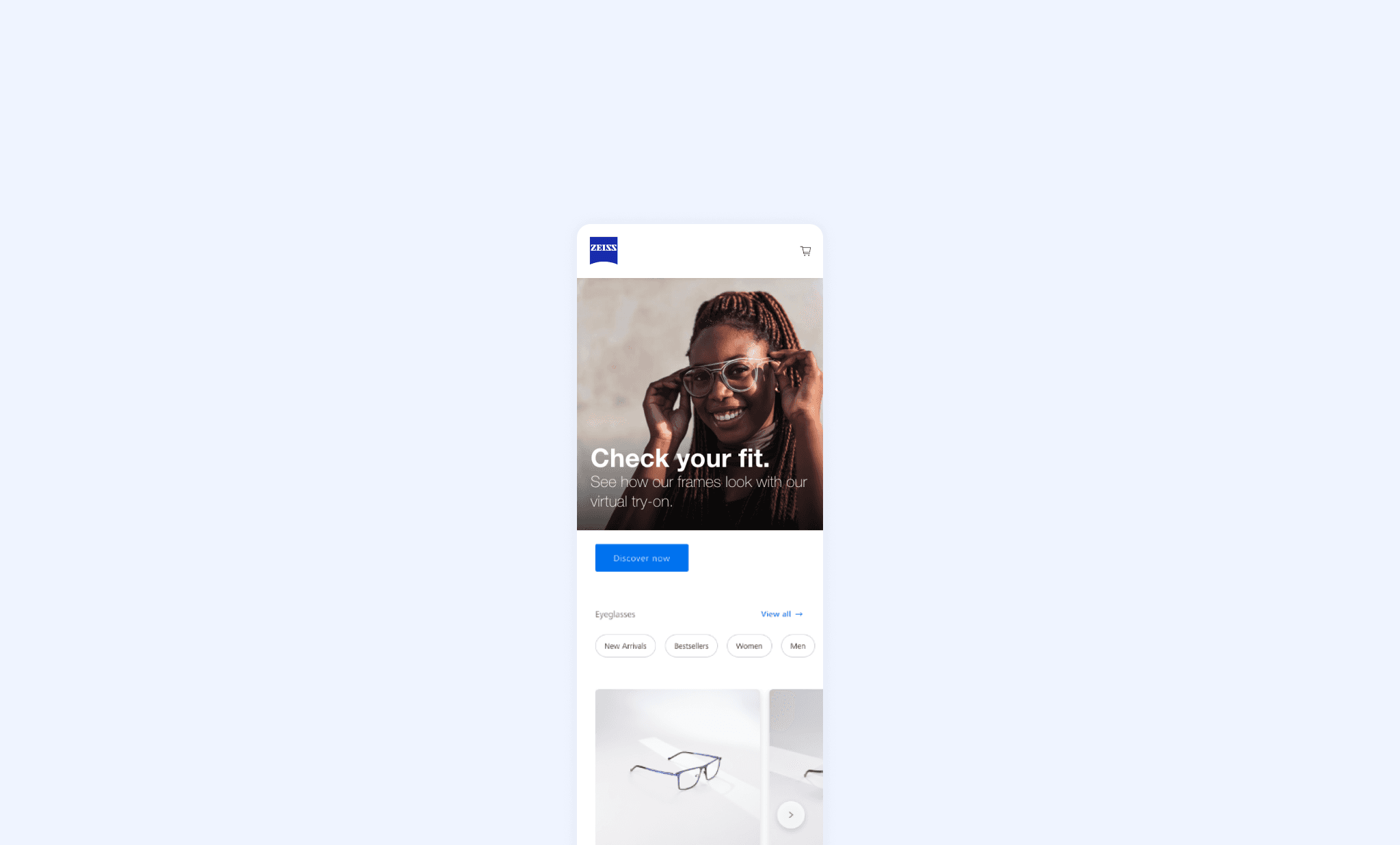 Following the research and concept phase, we helped ZEISS design their first e-commerce marketplace, where they're now selling prescription glasses in India and Brazil. We worked as an embedded design team next to ZEISS's in-house PO and development team.